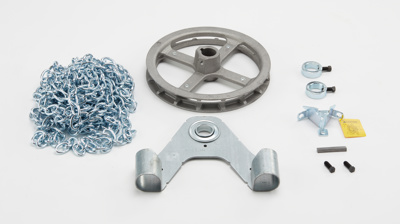 This kit includes hardware to install a chain operated hoist. A shaft extension is also required, sold separately. Order extension part #504481 for 944 doors, or part #600531 for 955 doors.